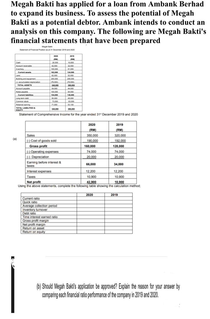 Solved Megah Bakti Has Applied For A Loan From Ambank Berhad Chegg Com